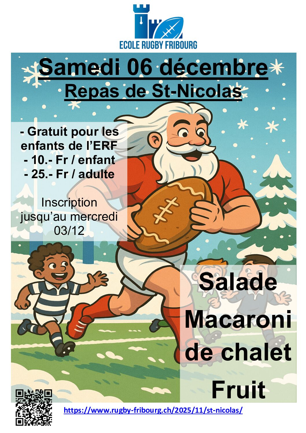 Les inscriptions pour le repas de la St Nicolas organisé par l’Ecole de Rugby de Fribourg sont ouvertes !